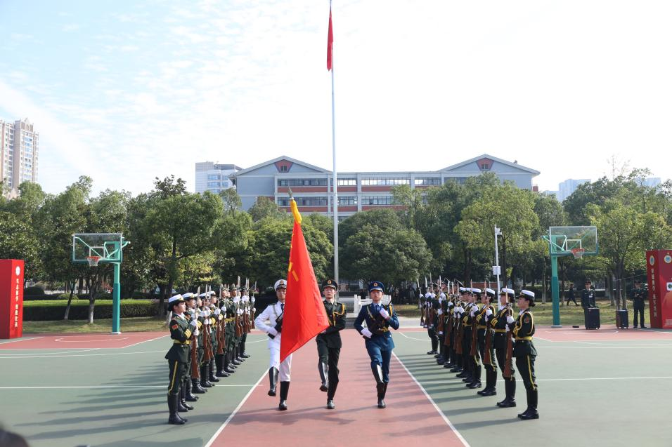 “下面出场的是湖南师范大学国旗护卫队——”伴随着激昂的分列式进行曲,刀光闪耀,校旗飘扬,队员们迈着沉稳有力的步伐登场,每一步都踏得掷地有声,宛如奏响时代的强音。飘扬的校旗承载着师大人的壮志豪情,尽显巾帼风采。