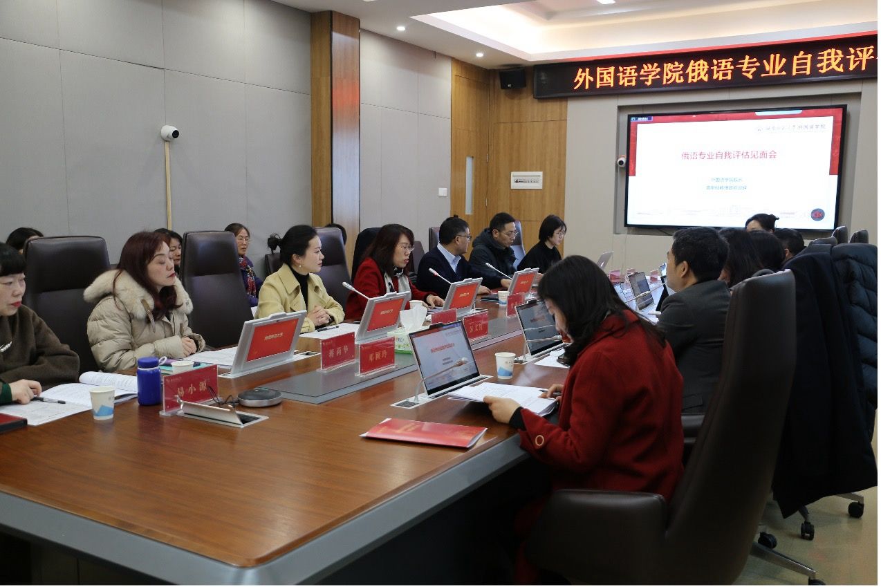 (通讯员 曾永兴)12月18日,由教育部外指委俄语分委会副主任委员、上海外国语大学俄罗斯东欧中亚学院院长许宏教授担任组长,教育部外指委俄语分委会副主任委员、北京外国语大学俄语学院党总支书记黄玫教授,教育部外指委俄语分委会秘书长、大连外国语大学研究生处处长彭文钊教授,我校教育部师范专业认证专家谭长银教授,我校语言与文化研究院院长、教育部师范专业认证专家邓颖玲教授组成的专家组对我院俄语专业开展本科专业自我评估工作。
