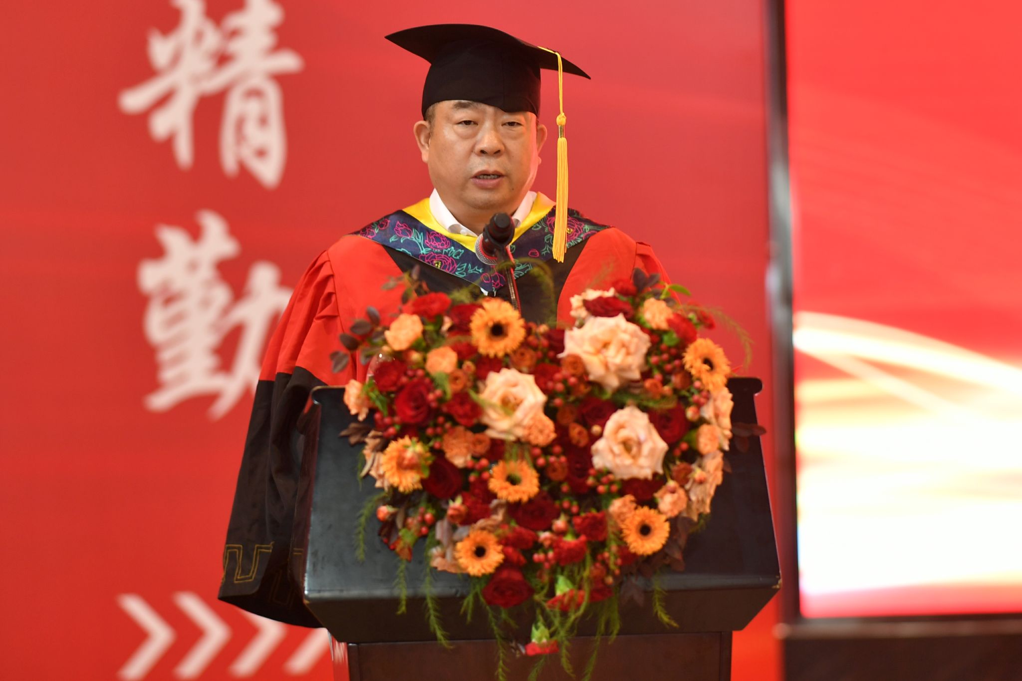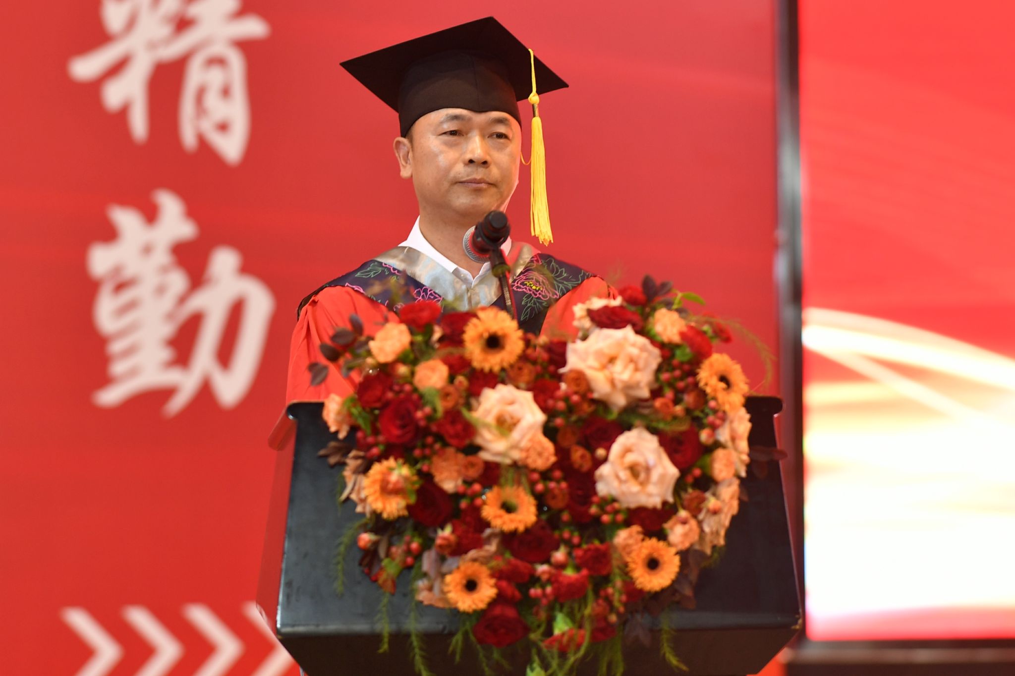 向坚持代表学院向圆满完成学业的毕业生们表示热烈祝贺,并向辛勤培育大家的家人以及悉心指导的师长致以诚挚感谢。他表示,大学四年,大家用拼搏将“不可能”变为“可能”,用创新让“平凡”成为“不平凡”,在学校的正确领导下,在老师们的悉心指导和帮助下,为学院带来了无数的惊喜。他说,临别之际,作为师长,有几点期望与大家分享:一是以信念为舵,锚定人生航向。无论面临多大的挑战,都要坚守内心的信念,让它成为你们最坚强的力量;二是以创新为帆,勇立时代潮头。面对未来,要继续保持这种创新精神,勇于挑战现状,敢于尝试新事物;三是以实干为桨,在奋斗中成就自我。科学的探索、教育的奉献、文化的传承,都需要勤勉务实、不懈奋斗;四是以仁爱为根,涵养生命温度。不忘初心,善待自己,传递爱与温暖,用自己的光照亮自己,也照亮别人前行的路。