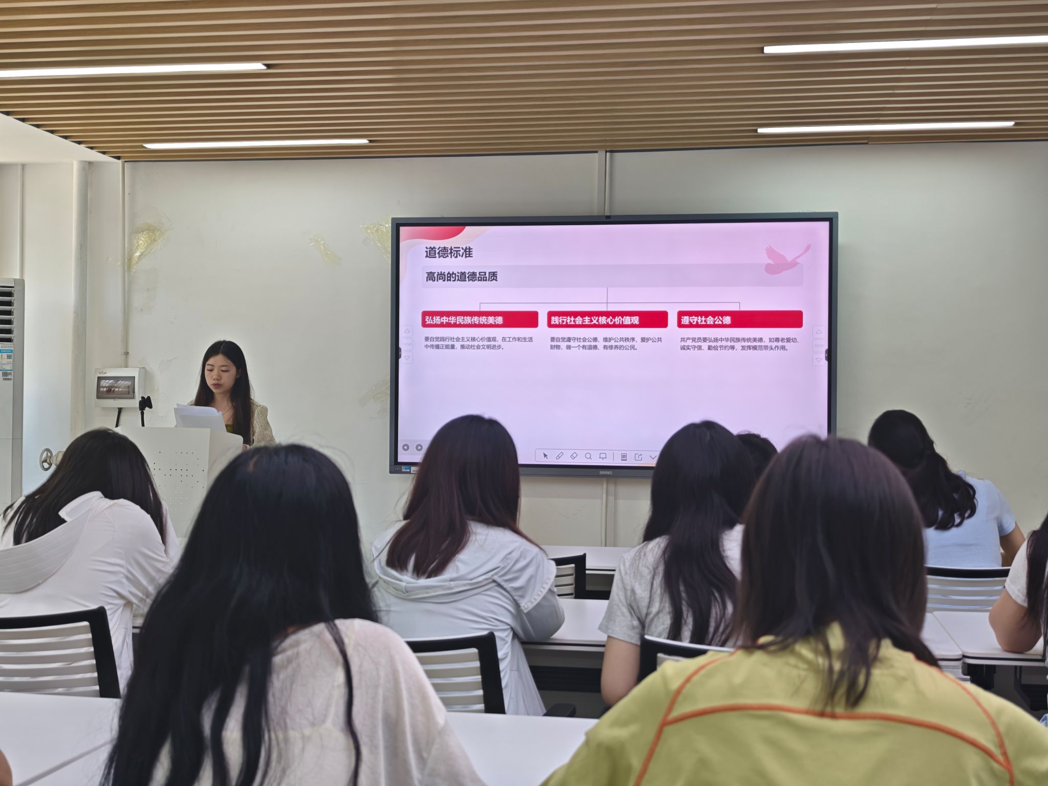 骆文带就如何成为一名合格的共产党员开展阐述。他表示,要严格要求自己,从现在做起,从身边做起,从每一件小事做起,以优良的作风展现新时代学生党员的风采。