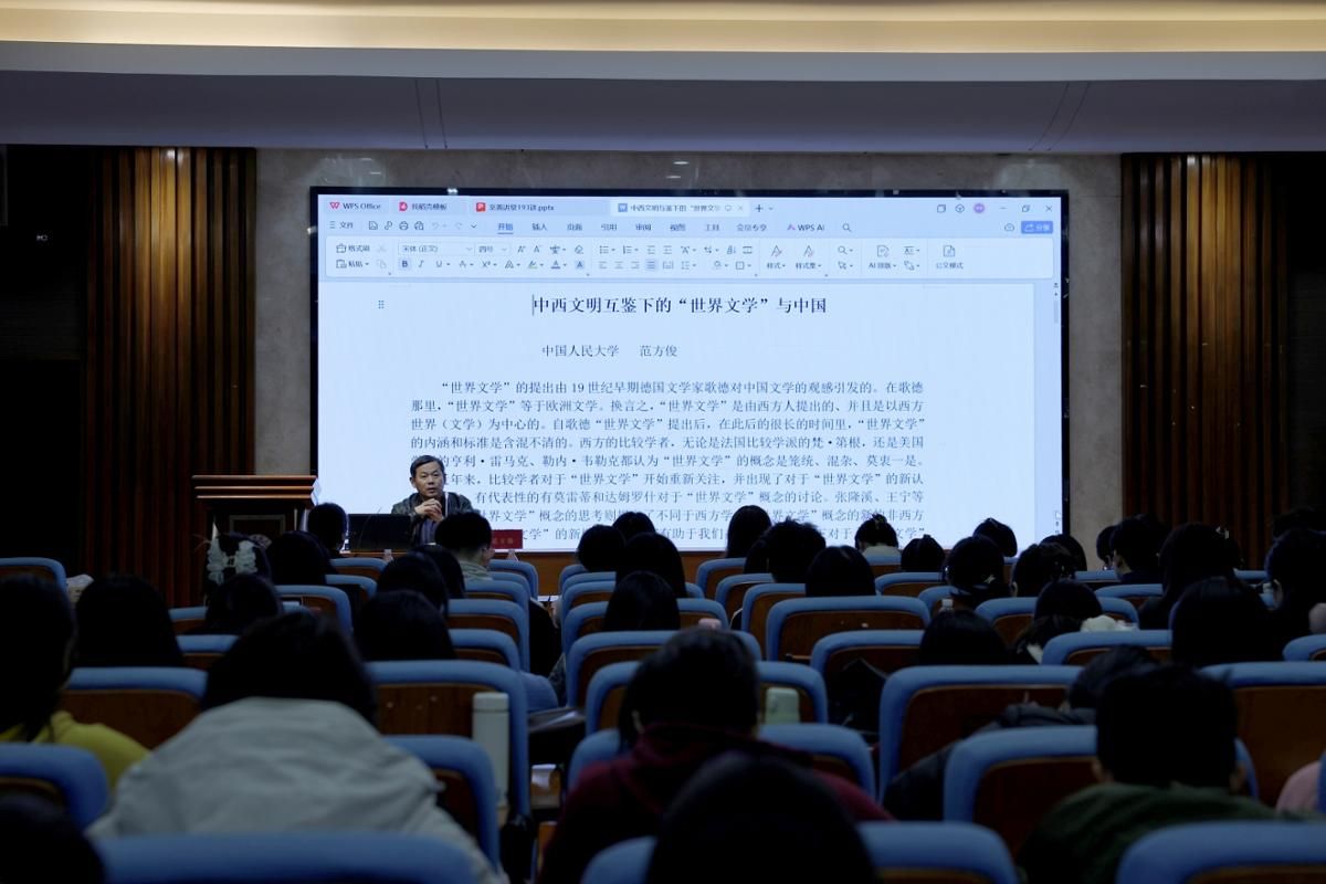 (记者 吴忆琴 吕海霞)11月27日,中国人民大学范方俊教授做客“至善讲堂”,为我校师生带来主题为“中西文明互鉴下的‘世界文学’与中国”的精彩讲座。我校外国语学院副院长刘白教授主持讲座。